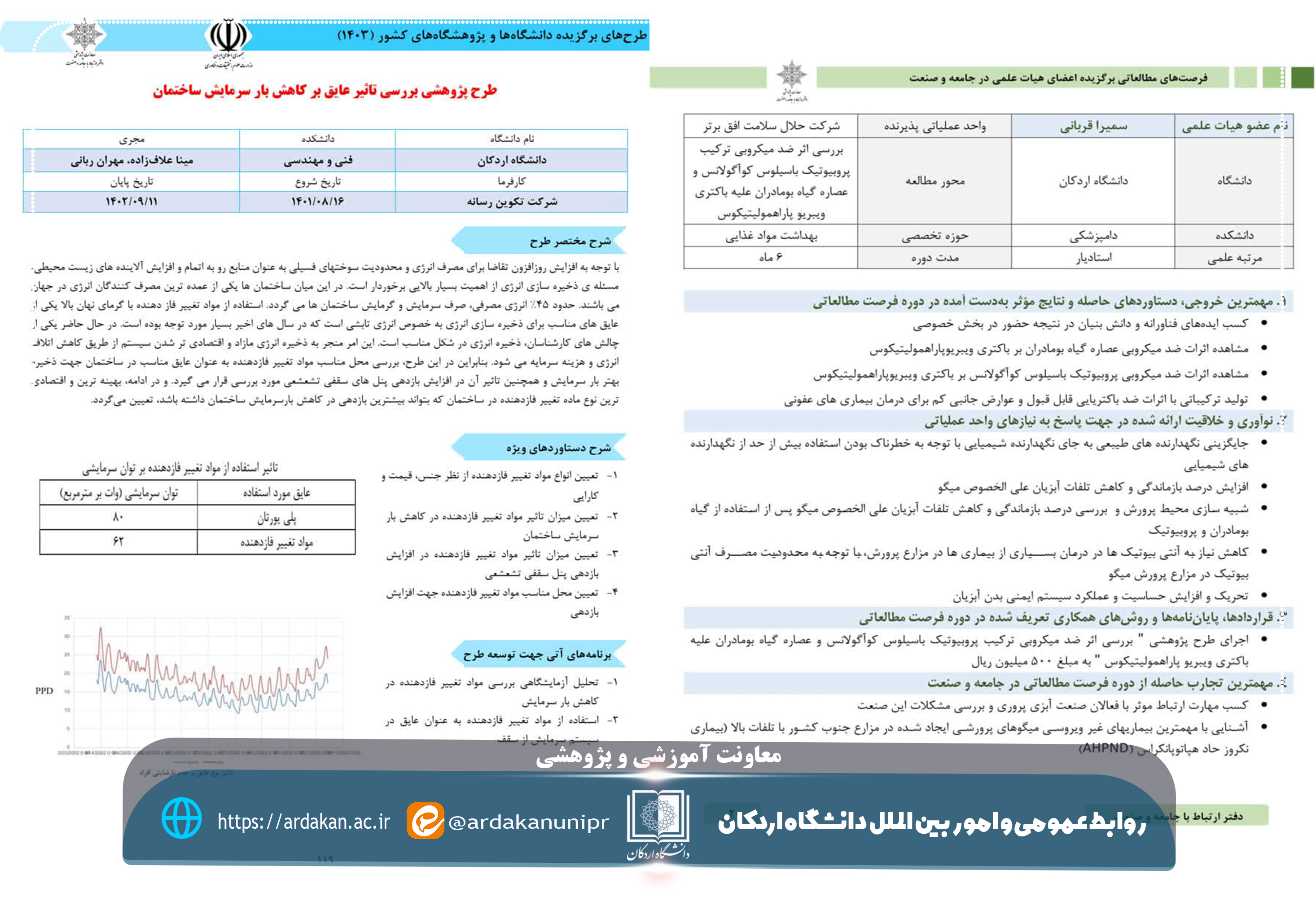 - انتخاب 3 طرح اعضای هیات علمی دانشگاه اردکان به عنوان طرحهای برگزیده ارتباط با صنعت وزارت عتف سال 1402